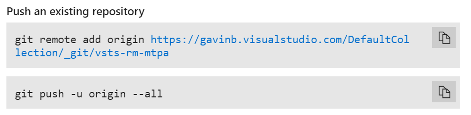 git remote add origin <url-of-your-vsts-git-repo> git push –u origin –all