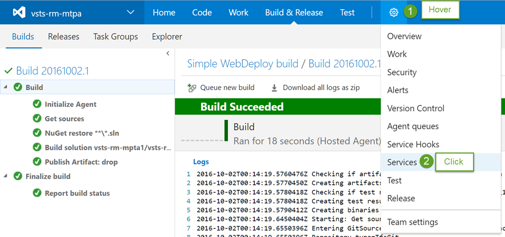 In VSTS click on Builds