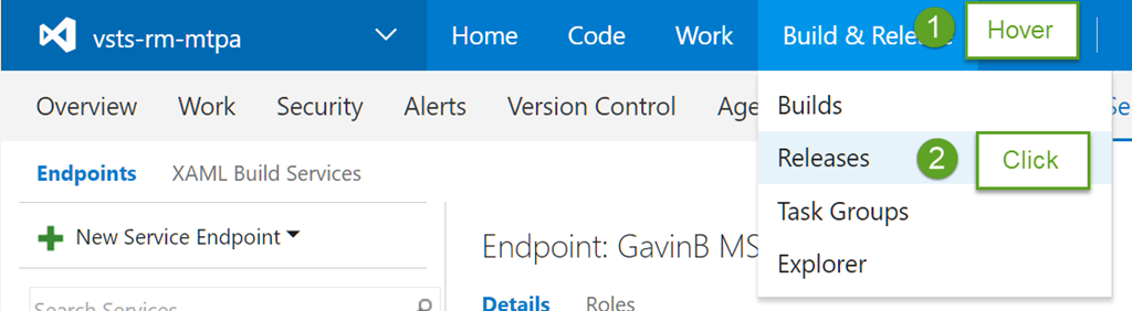 Note that your VSTS instance may still have the older top navigation that has Build and Release as separate entries at the top level.