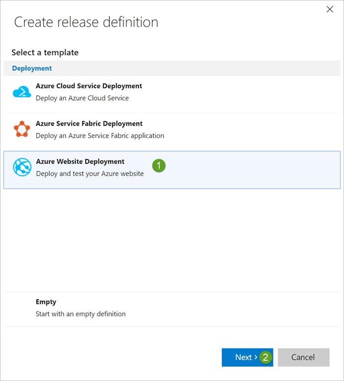 Select Azure Website Deployment and click Next