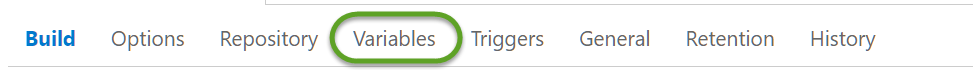 Click on the Variables item in the Build Definition navigation.